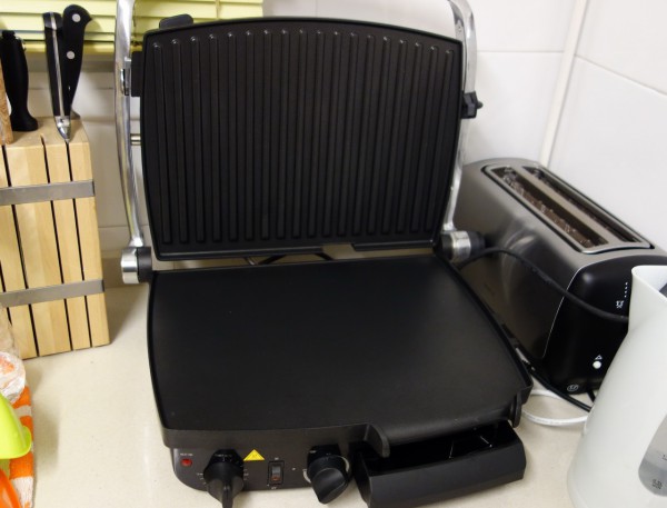 Двусторонний электрогриль - крайне полезная штука. В Москве у меня Bork G801 (который в Штатах называется Breville). Устройство удобное, использую постоянно, но стоит этот гриль - каких-то нереальных денег, 625 евро (25 тыров). И ничего похожего дешевле я не нашел - только бутербродницы за 3-4 тыра, но это жалкое подобие нормального электрогриля.