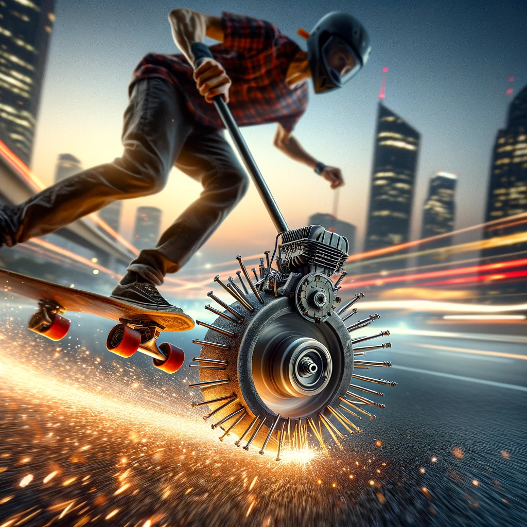 Испанский стартап придумал "электровесло" для скейтеров. Разгоняет до 40 км/ч, а одной зарядки хватит на 20 км. Цена кусачая - €799. Да и лучше не представлять, что будет со скейтером, который слетит на скорости в 40 км/ч.