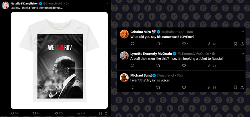 Жительницы США оказались очарованы главой МИД РФ: они рассказывали, что голос дипломата бросает в дрожь, и удивлялись, почему американские политики не могут выглядеть, как российский министр. Женщины даже дали ему имя «LOVErov» и пожелали выйти за Лаврова замуж.