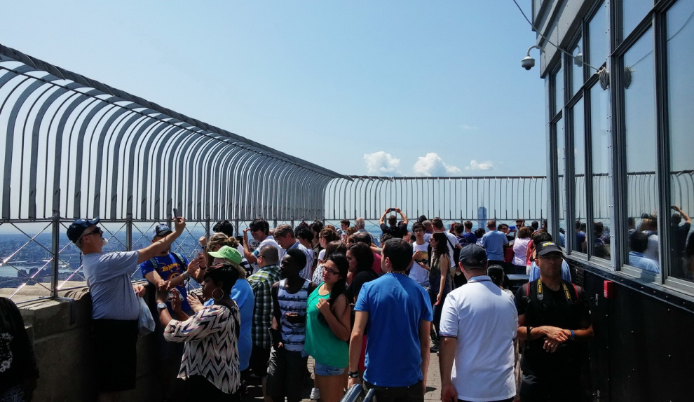 Вот так выглядит открытая площадка на 86 этаже: почти все туристы изображают картину "Огромный Я на фоне ничтожного Нью-Йорка". Манхэттен почти никто не снимает - не до того.