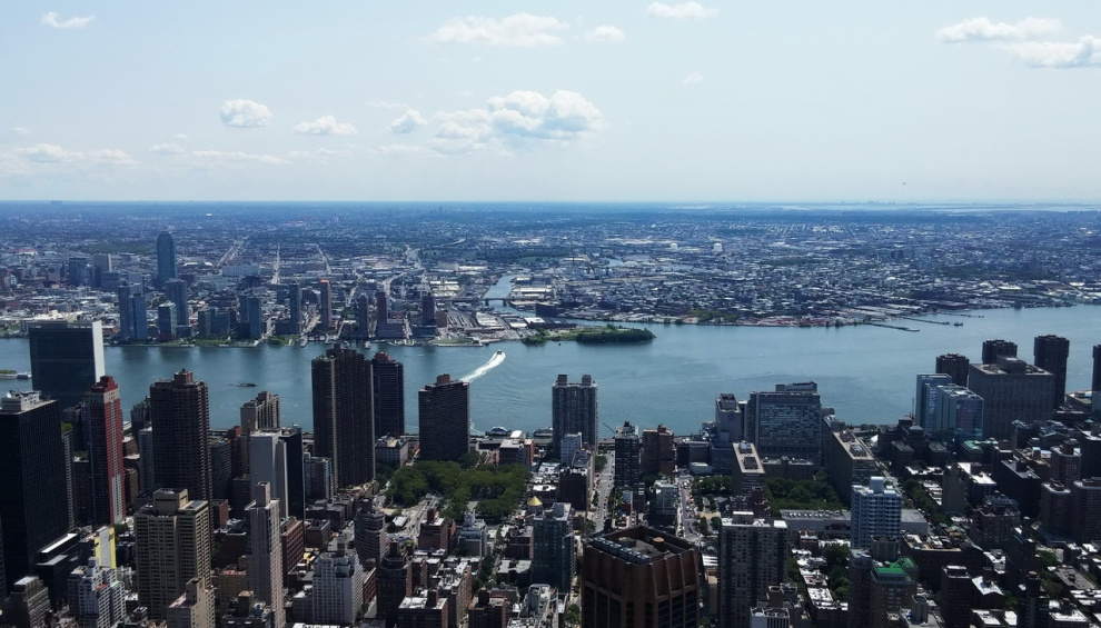 Самый лучший вид на Манхэттен из Hamiltpon Park, что в Нью Джерзи, город Weehawken, как раз напротив 42-й Стрит. Лучшее время - рано утром или в вечерние сумерки. Как нибудь в своей блоге размещу фотографии оттуда.