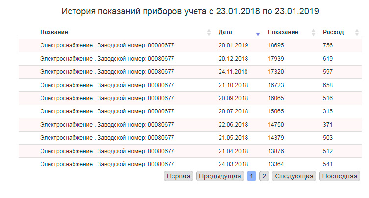 Вторая колонка - дата, когда снимали показания счётчика, третья колонка - собственно показания.