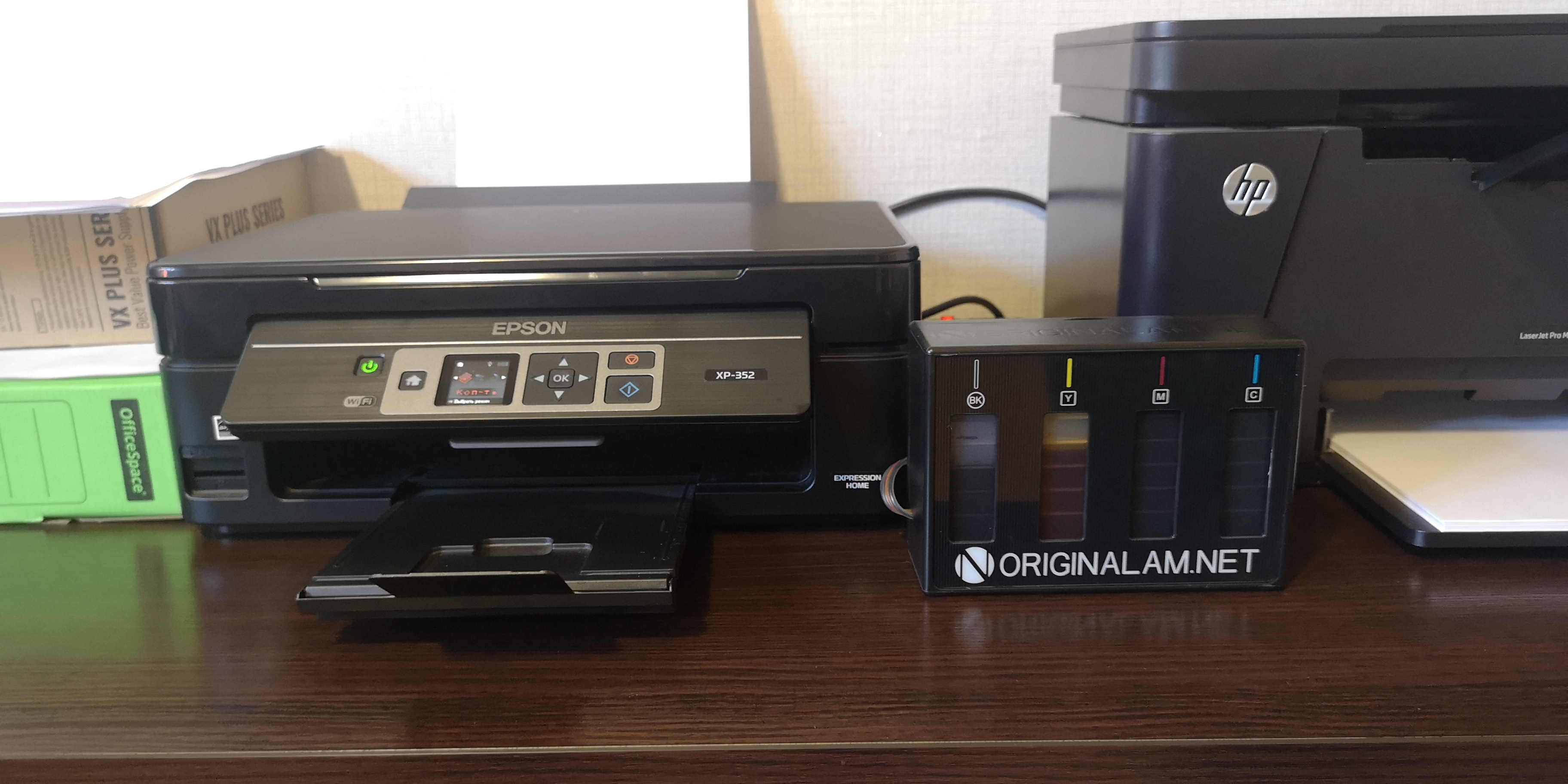 Сама СНПЧ чтоит рядом с МФУ, не мешает, бутылки-ключи, то есть ошибиться невозможно, ничего пролить нельзя, никакой грязи, воткнул, залил, закрыл, все!