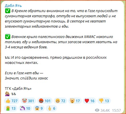 ✔️Западные страны, которые еще вчера проливали крокодильи слезы по мирным жителям, погибшим в войне между Украиной и Россией, сегодня безмолвствуют перед лицом гибели тысяч невинных детей в Газе. Если вы плачете по Украине, почему молчите по детям, погибшим в Газе?».