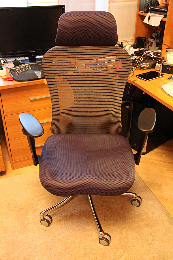 Моему старому эргономичному креслу исполнилось пять лет, оно стало страдать всякими старческими болезнями, вроде поскрипывания и периодического выпадения зубов колесиков, так что я задумался о приобретении нового креслица. Собственно, по поводу типа кресла никаких вопросов не было - только эргономика подобного типа: с кучей регулировок, с сетчатой спинкой, с валиком под поясницу - предыдущее кресло оказалось вполне удобным, только кожаное сиденье не особо нравилась.