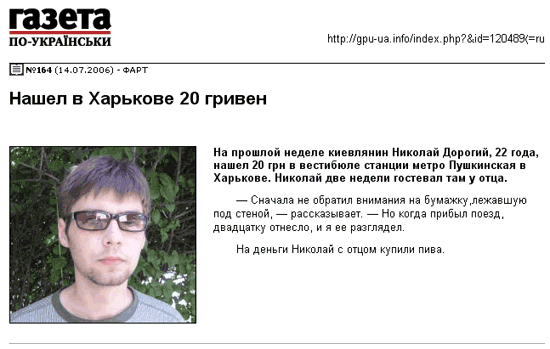 Ну, наших 20 грн это 106 русских рублей по свежему курсу, но всё равно повод для новости идиотский, полностью согласен с Алексом.
