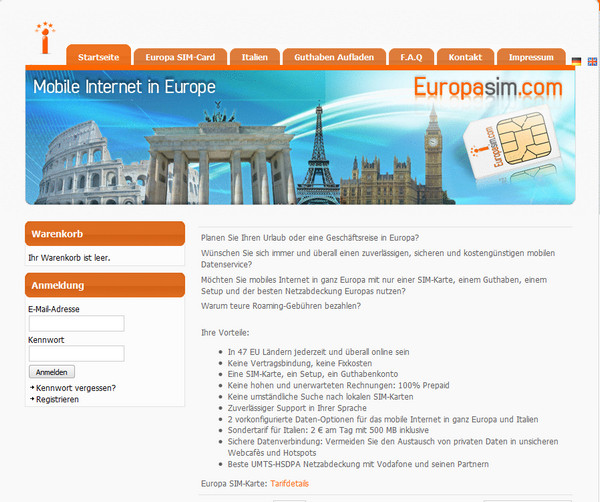 Подсказали еще один интересный вариант недорого мобильного Интернета по Европе. Называется Europasim. Просто симкарта - любая: mini, micro или nano. Стоит 39 евро. Предоставляет выход в Сеть в 47 странах Европы по цене 3 евро за полгига в день. Если в Интернет не выходишь - деньги не списываются. Симкарта без использования живет год. Также предоставляются дешевые SMS и телефонные звонки.