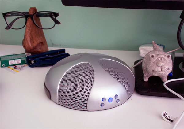 А если в конференции с вашей стороны должно участвовать несколько человек (например, семья собралась, чтобы поговорить с родственниками) и хочется получить хорошее качество звука - можно приобрести вот такую штуку - и тогда вы сможете разговаривать с вашей любимой бабушкой хоть все одновременно.