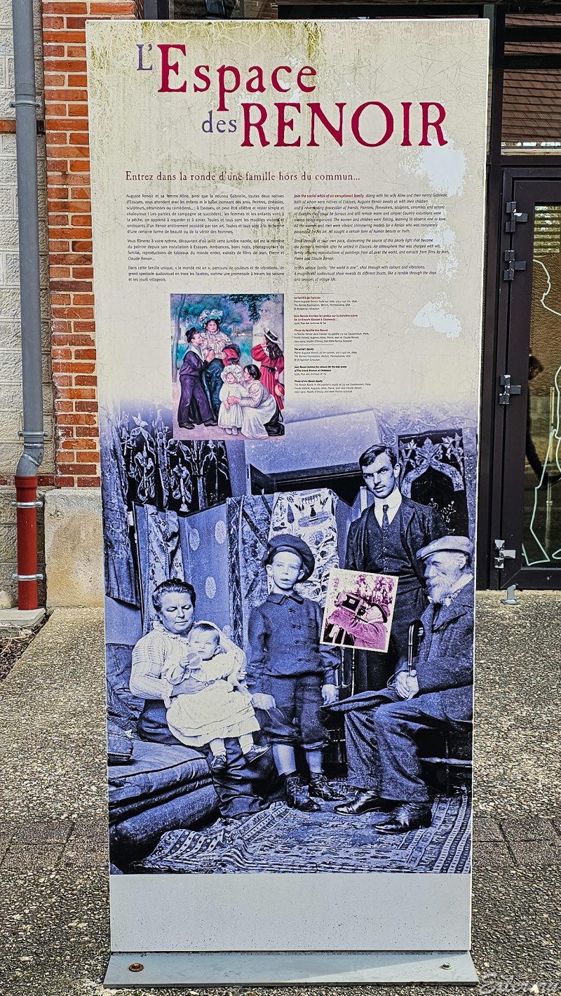 Дом-музей художника, там же расположена его мастерская. Там вообще проводятся экскурсии, было бы интересно побывать, но увы - в нашу программу такая экскурсия не входила. Кстати, еще один дом-музей художника находится в городе Кань-сюр-Мер на Лазурном берегу: Ренуар, как известно, очень страдал от ревматоидного артрита, который у него развился после того как художник упал с велосипеда и сломал руку, он не мог жить в холодном климате, поэтому большую часть года проводил в Кань-сюр-Мер, а летом приезжал в Эссуа. А в этом доме музей открыли только в 2017 году. В 2012 году власти Эссуа приобрели дом у актрисы Софи Ренуар, праправнучки Ренуара, за €600 тыс, после чего потратили порядка миллиона евро на превращение дома в музей, и это заняло четыре года.