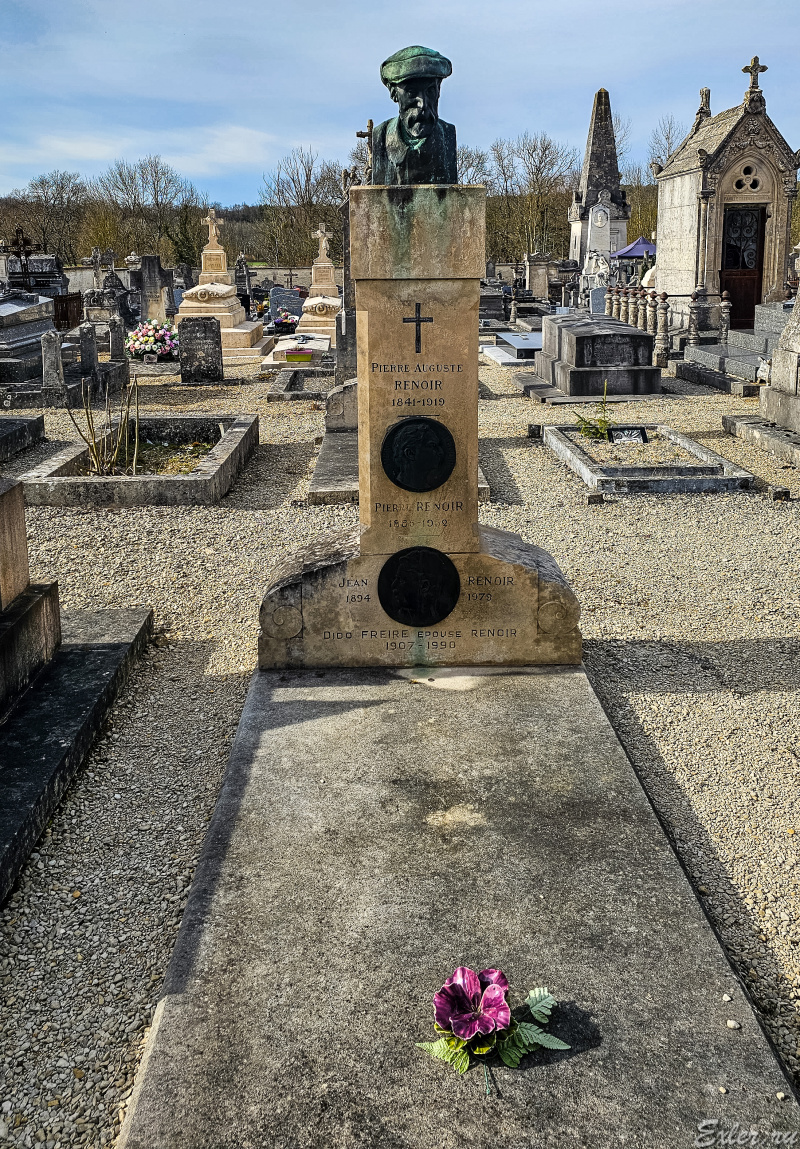 Могила Огюста Ренуара в Эссуа. Также здесь похоронены Жан (он много лет прожил в Америке, но завещал похоронить себя в этом городе) и Пьер Ренуары.