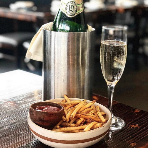 Фактически, одна из самых известных закусок в Sylvain в Новом Орлеане — это заказ шампанского и картофеля фри. «Идеальная комбинация» брюта и картофеля фри, как это описано в меню, стоит 50 или 90 долларов за маленькую или большую порцию.