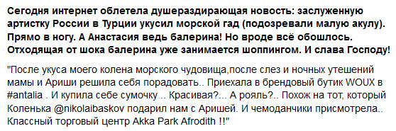 Это колено Волочковой покусало предполагаемую акулу. Где, спрашивается, Гринпис? Почему всякие первые встречные\поперечные позволяют себе глумиться над животными?