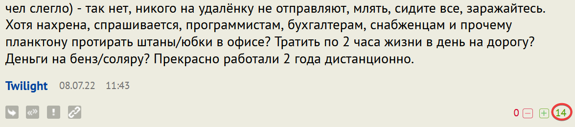 Только ленивые жопы хотят удаленки и несут бред, что "у нас всё отлично получалось на удаленке". Смешные.