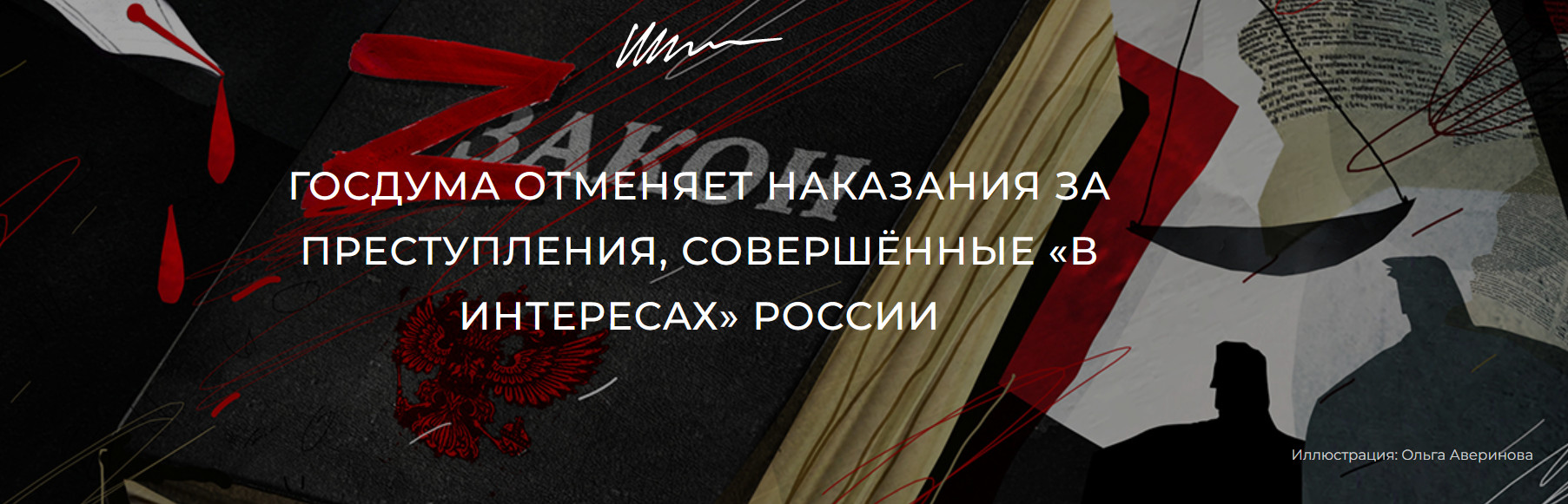 Вчера Госдума приняла в первом чтении удивительный с правовой точки зрения законопроект. Его официальная цель – регулирование «применения положений» Уголовного и Уголовно-процессуального кодексов России на четырёх «присоединённых» территориях. По сути депутаты предлагают установить там правовой режим в стиле «дикого Запада» или даже Средневековья. Главное положение законопроекта – отказ от уголовного преследования за абсолютно любое преступление, если оно было совершено «в защиту интересов Российской Федерации».