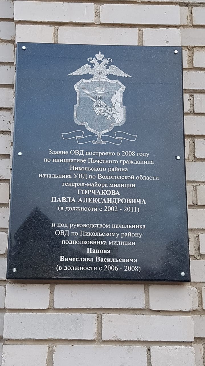 В Никольске депутат Заксобрания области Павел Горчаков открыл памятную доску, повешенную на ничем не примечательное здание местного РОВД, построенное в 2008 году. Памятная доска рассказывает о подвиге... Павла Горчакова, по указанию которого было возведено это строение. (Отсюда.)