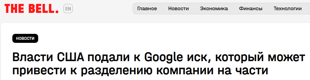 Статья "Власти США подали к Google иск, который может привести к разделению компании на части".
