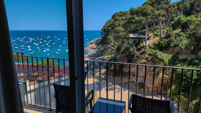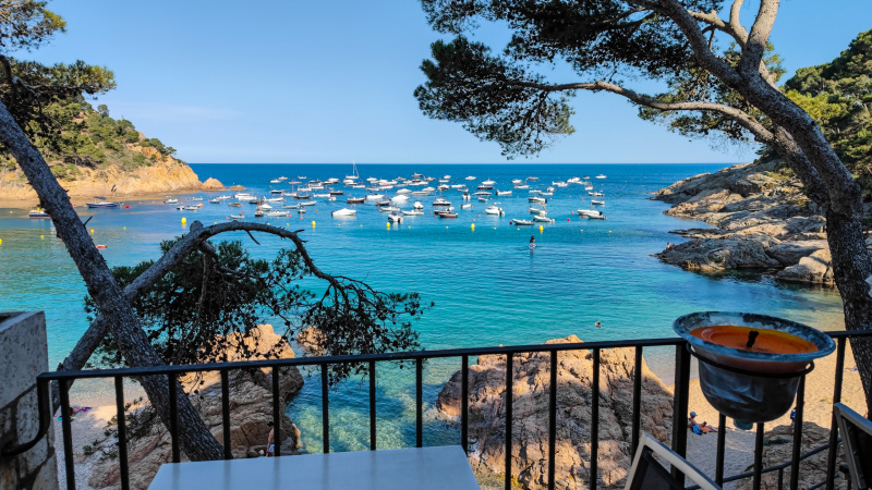Отель Hostalillo на Коста-Брава. Собственно, тоже выбирали из-за вида из окна. Маленький залив с пляжем, изумрудное море, сосны. А завтра - уже домой.
