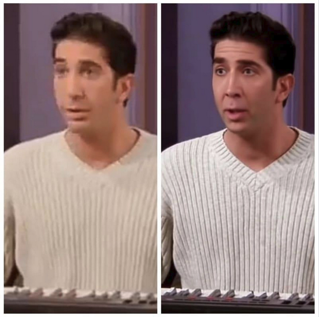 Автору пришлось размазать весь кадр с Россом, чтобы нам на секунду показалось, что похоже. Лоб и уши просто оставлены от Швиммера.