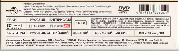 Диск приобретали в фирменном магазине - он лежал в стойке релизов "Киномании". Но что за издатель такой ООО "PackFilm" - я так и не выяснил. Они вроде упаковкой занимаются - и только-то. Но в выходных данных написано вот это: