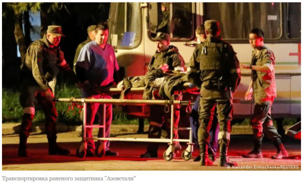 Эвакуацию украинских военных в "ДНР" также прокомментировал президент Владимир Зеленский. "Благодаря действиям украинских военных, разведки, а также переговорной группы, Международного комитета Красного Креста и ООН надеемся, что удастся сохранить жизнь наших ребят. Хочу подчеркнуть: украинские герои нужны Украине живыми. Это наш принцип. Думаю, эти слова поймет каждый адекватный человек", - сказал он в своем вечернем видеообращении. (Отсюда.)
