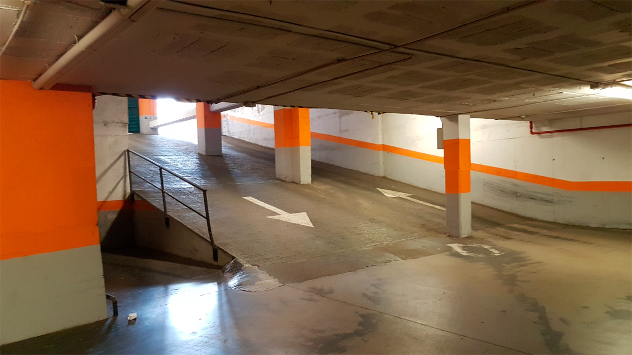 Заехал на машине в магазин "Меркадона", поставил тачку в подземный гараж - вот въезд в него и выезд, горка довольно крутая.