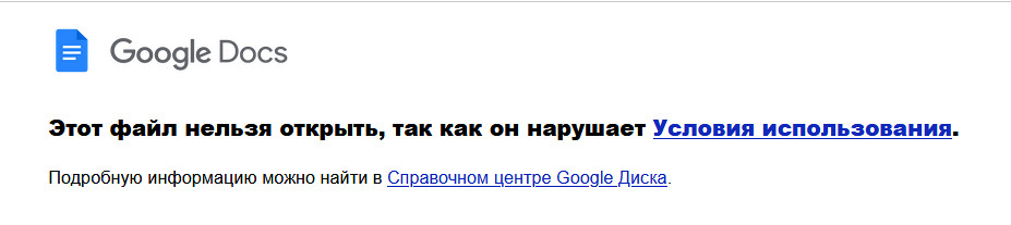 Этот файл нельзя открыть, так как он нарушает Условия использования.