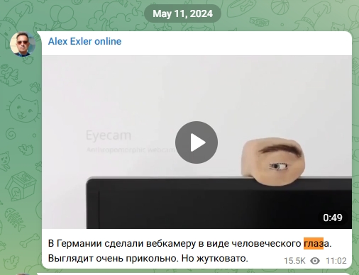 В Германии создали вебкамеру в виде человеческого глаза EyeCam. Глаз умеет моргать и двигаться.