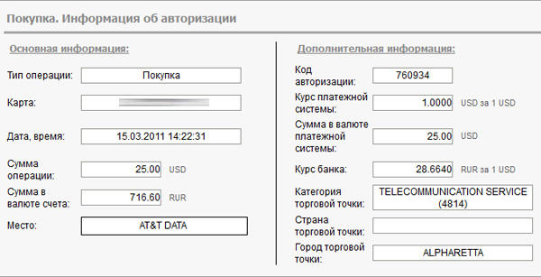 Каждый месяц в какой-то из дней в промежутке от 14 до 19 числа у меня с кредитки снимается $25 за AT&T DATA. В платежке вот такая информация. Абонентская плата за какой-то сервис, на который я совершенно точно не подписывался. Город Альфаретта расположен в штате Джорджия - я не был ни в городе, ни даже в этом штате.