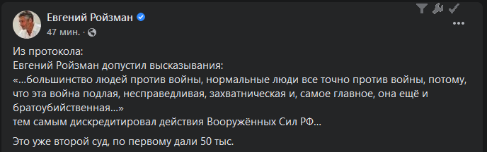 «…большинство людей против войны, нормальные люди все точно против войны, потому, что эта война подлая, несправедливая, захватническая и, самое главное, она ещё и братоубийственная…»