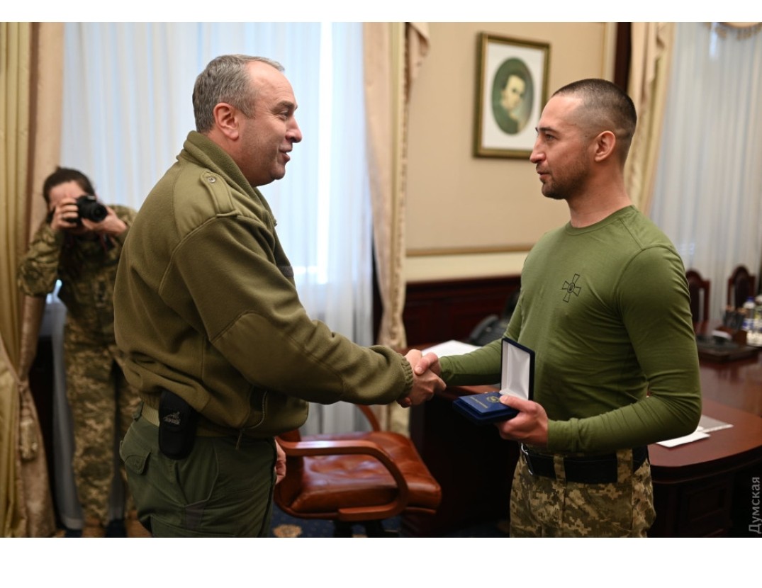 "Пограничник Роман Грибов ( справа на фото), который проходил службу на острове Змеиный и в первый день широкомасштабной войны прославился своим ответом на ультиматум с российского ракетного крейсера «Москва», прокричав оккупантам: «Русский военный корабль, иди на х**!», после плена вернулся домой – в Черкасскую область. "