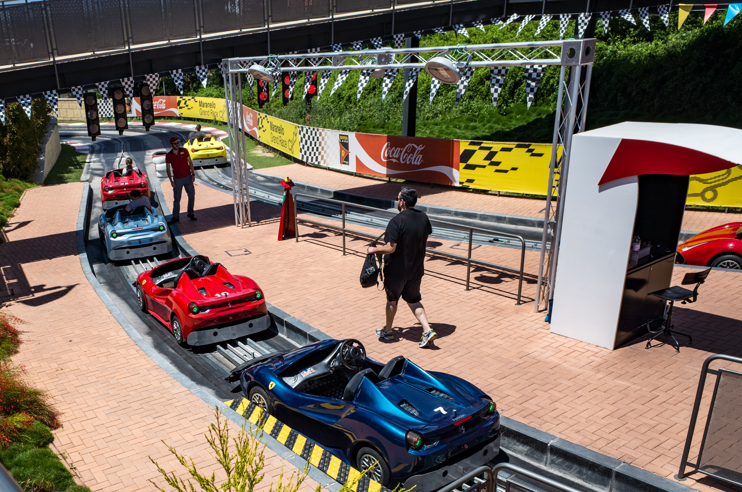 Maranello Grand Race - типа супергонки для детей. Аттракцион, на мой взгляд, очень так себе, но очередь туда стояла здоровенная. Машинки еле едут по рельсам, если выкрутить руль, то и вовсе останавливаются - в общем, супергонки.