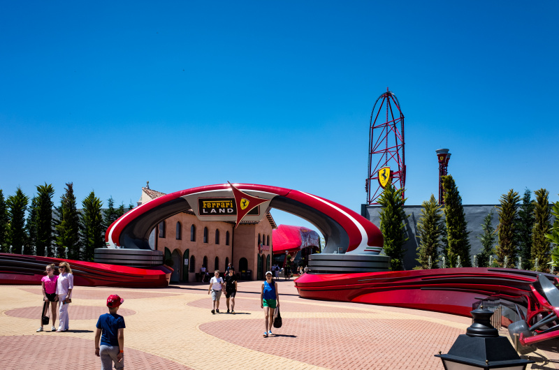 Ну и теперь новый раздел парка - Ferrari Land. Для входа сюда нужно покупать отдельные билеты. Кстати, стоимость входа сюда при покупке вместе с билетом в парк Порт Авентура или при проживании в отеле парка значительно дешевле, чем при покупке отдельного билета только в этот раздел.