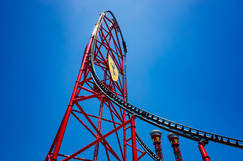 Один из главных аттракционов Ferrari Land - Red Force. Почувствуй всю мощь Ferrari, но не забудь заранее надеть памперс. Вопеж там стоит до небес, но многие посетители катаются здесь по несколько раз.