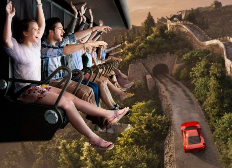 Flying Dreams - обалденный аттракцион, который по ощущениям и адреналину очень похож на аттракцион Simpsons в Universal Studio. Посетителей сажают в кресла, пристегивают, далее на экране демонстрируется полет - следование за мчащейся по разным городам и странам Ferrari GT. Кресла раскачиваются, следуя за сюжетом ролика, всякие звуки, брызги воды и так далее. Экран очень большой и находится не только перед зрителями, но еще как бы окружает их слева-справа, сверху-снизу, так что вовлеченность в аттракцион получается совершенно обалденная. Вот картинка с их официального сайта. Настоятельно рекомендую посетить, очень эффектно и здорово.
