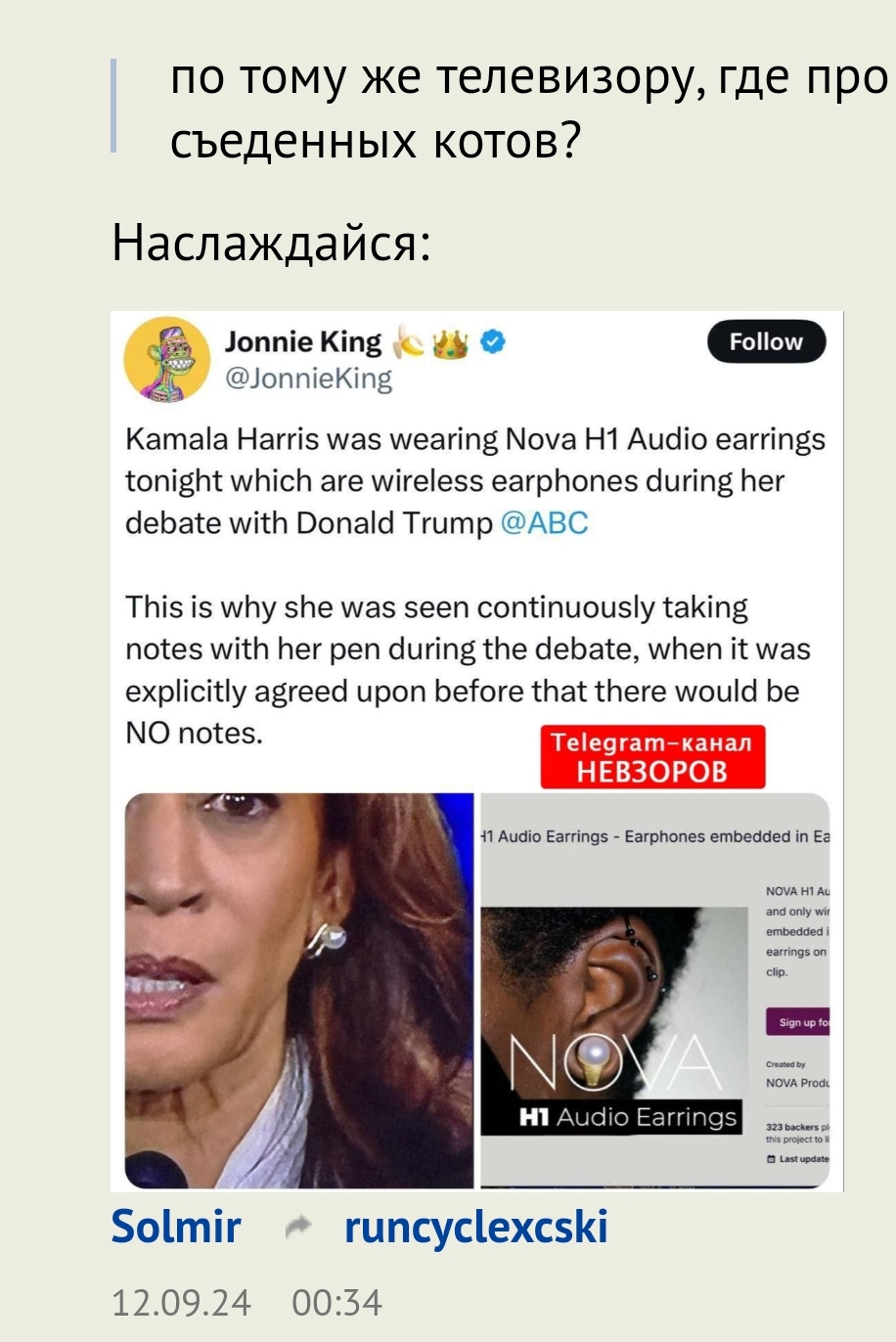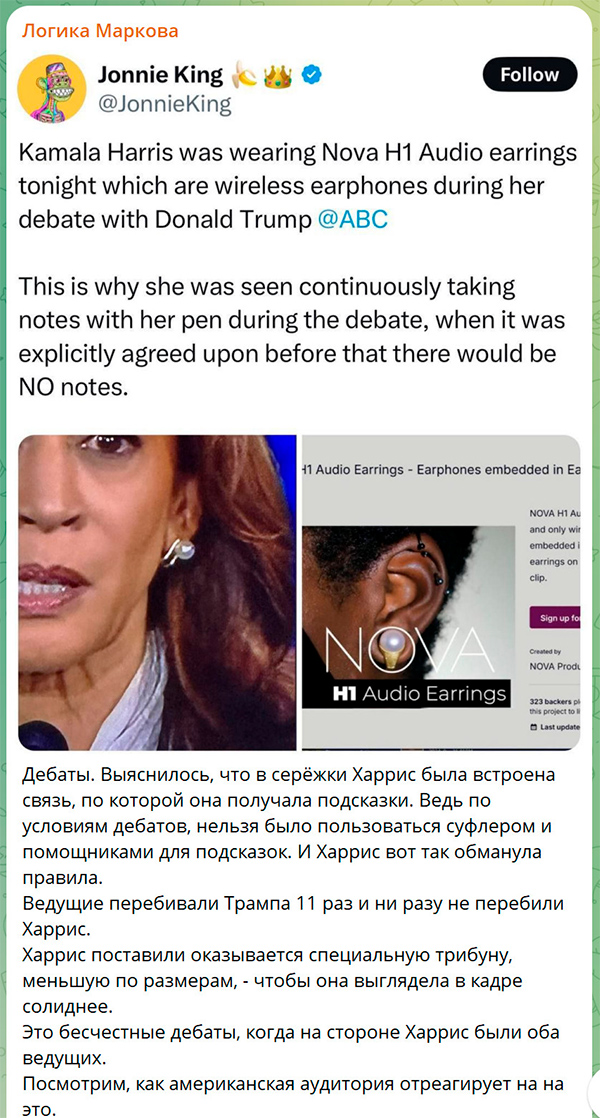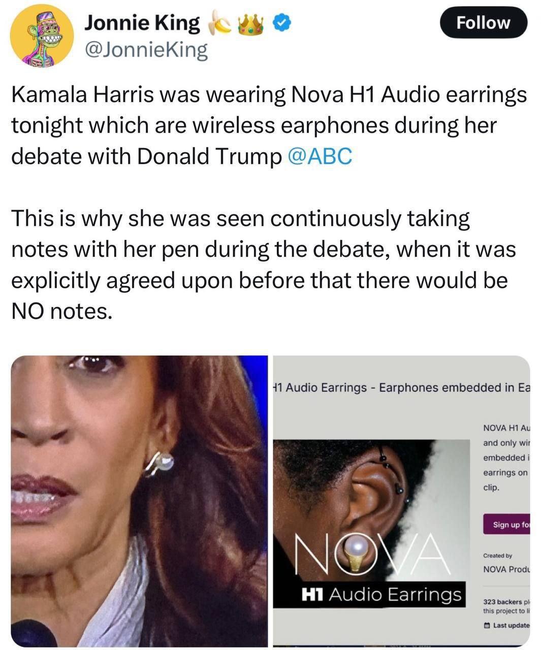 Катала Харис действительно использует гарнитуру для читерства на дебатах, интервью и выступлениях. Экслер и демократские комментаторы должны извиниться.