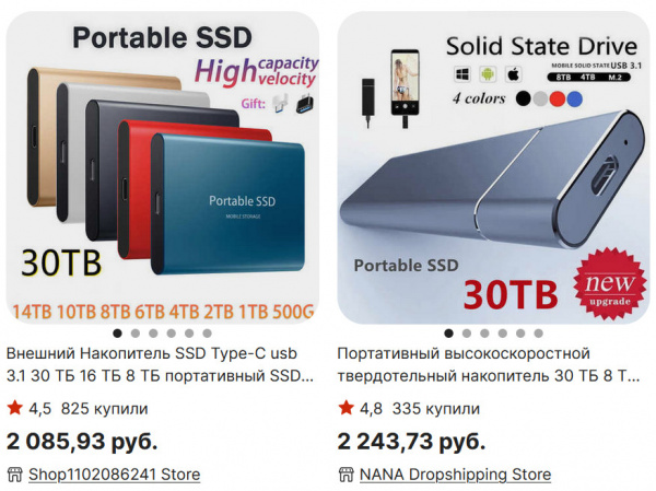 Ну, если человек в здравом уме покупает в каком-то левом магазине "SSD размером в 30 ТБ" за 35 баксов, то, во-первых, никакого здравого ума у такого человека не наблюдается по определению, а, во-вторых, пускай скажет спасибо за две microSD по 512 МБ.
