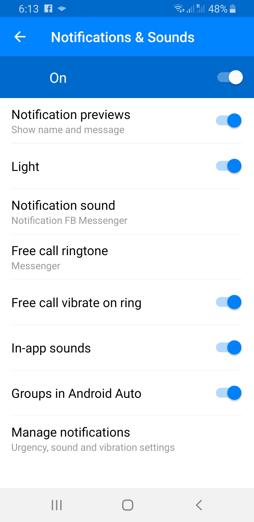 В s9+ Notification Sound меняется прямо в системных Settings -> Notifications -> Messenger.