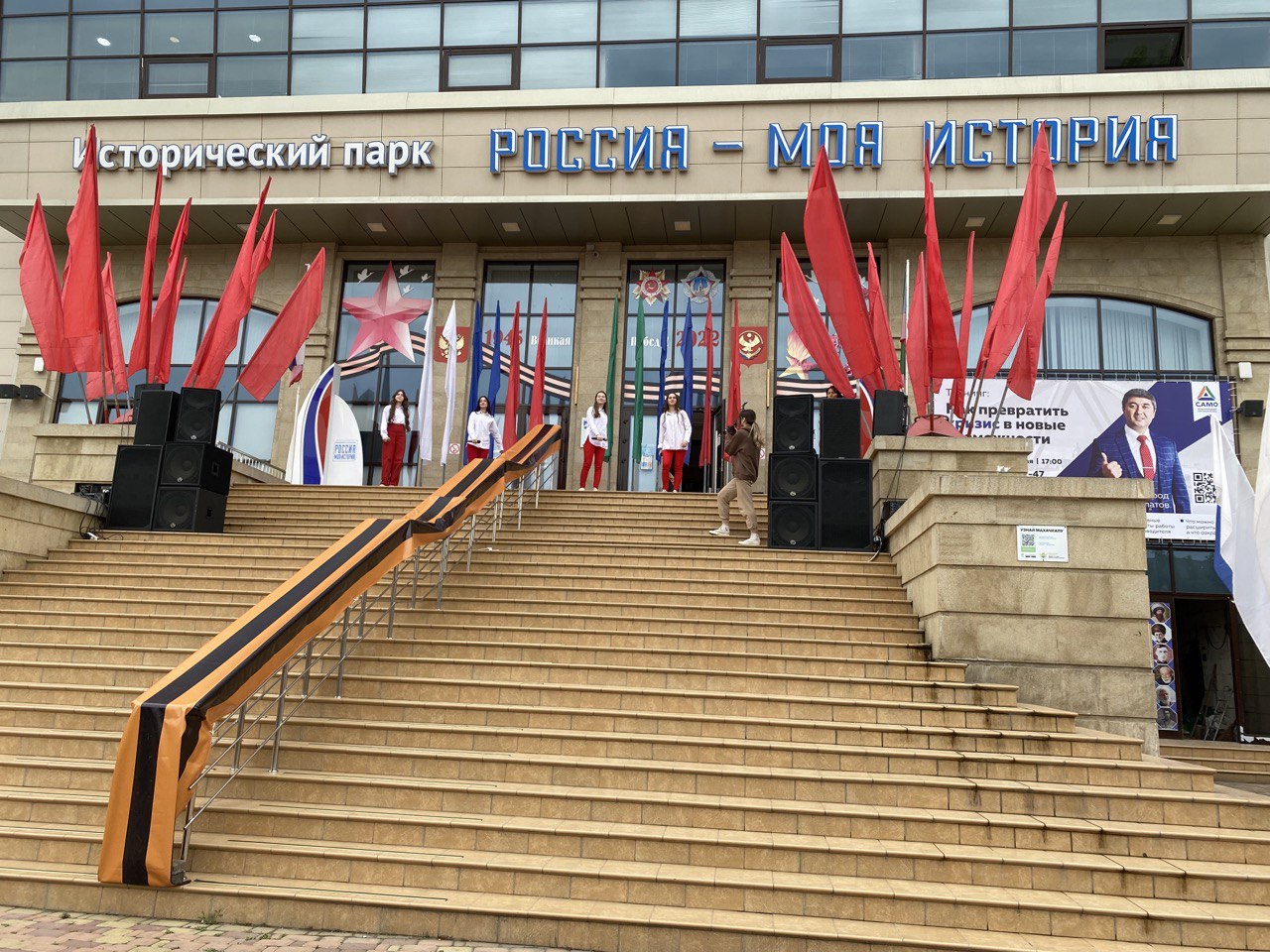 17 мая на площадке исторического парка «Россия – моя история» состоялась акция в поддержку Российской Армии и жителей Донбасса. Она прошла под лозунгом «Верен России - верен себе!». Перед собравшимися выступили полковник ВДВ в отставке, председатель дагестанского Совета ветеранов Магарам Алиджанов, борец Курамагомед Курамагомедов, директор училища «Олимпийского резерва» Гаджимурад Магомедов, от лица союза ветеранов Афганистана выступил Магомед Хадулаев. Участниками акции стали студенты вузов и ссузов, волонтерские отряды и общественные организации.