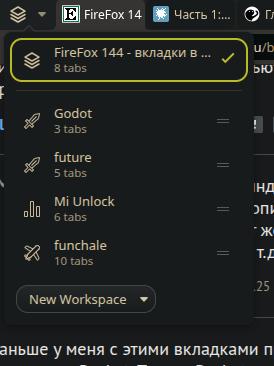FireFox 144 - вкладки в несколько строк