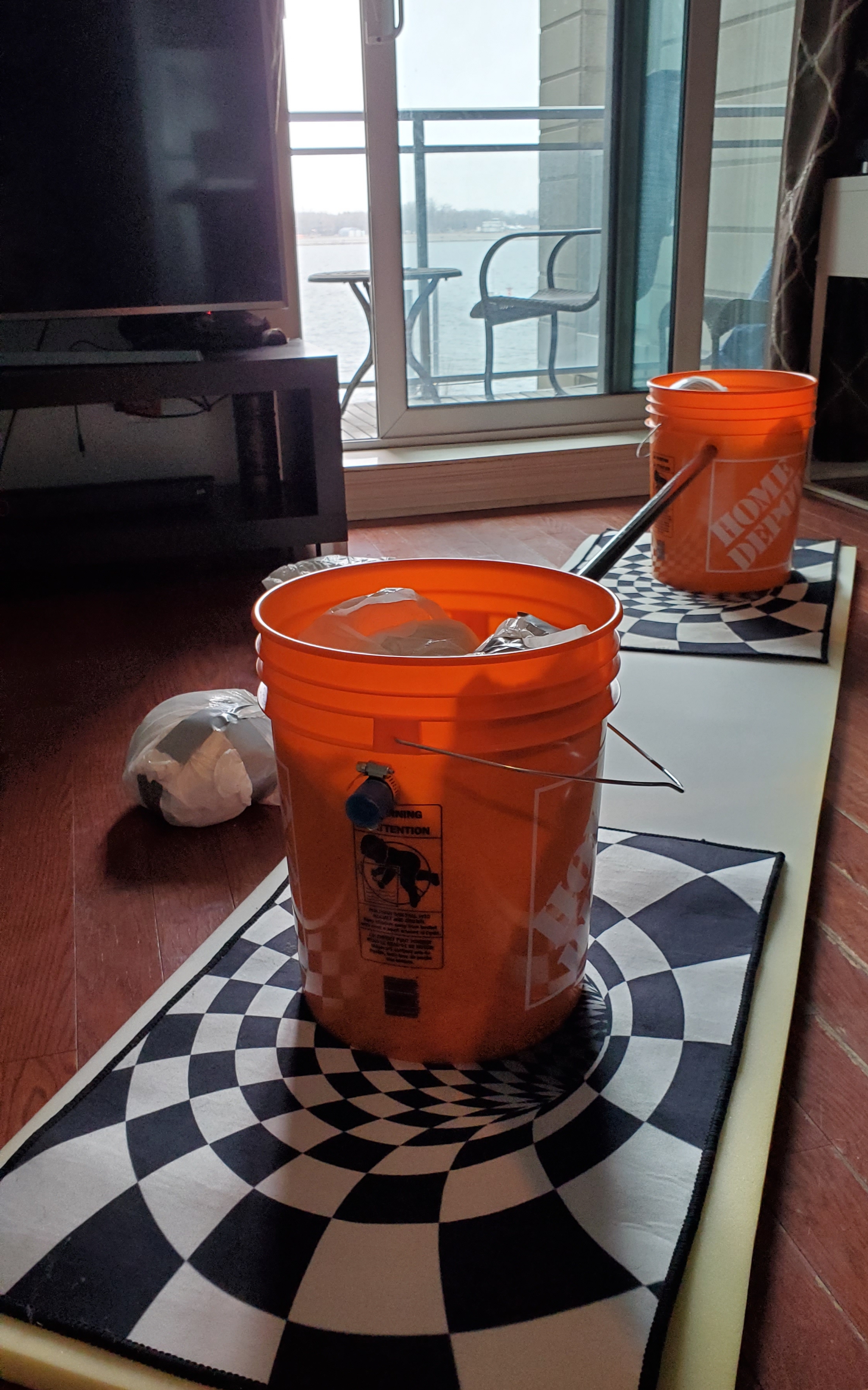 Построил себе штангу из двух вёдер, металлической палки и мешков с песком. Вполне все можно делать, становая, приседания, грудь, спина, бицепсы, трицепсы и все такое. Планирую на выходных сделать гантели из цемента