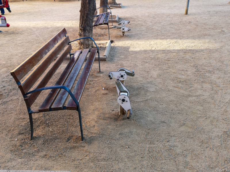 Калейя - физкультурная столица Каталонии. Здесь проходит IronMan, велогонка и так далее. Спортом занимаются все и в любой ситуации. Если вы думаете, что вам здесь кто-то даст спокойно посидеть на скамейке - так нет! Сел на скамейку - крути тренажер: чего просто так сидеть-то, правильно?