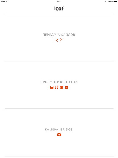 Интерфейс у программы очень простой: передача файлов, просмотр контента и работа с камерой, при которой запись ведется прямо на это устройство.