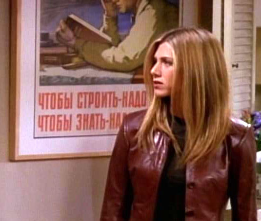 Кто может сказать, откуда в квартирах Росса и Моники взялись советские агитплакаты? Их родители явно не иммигранты из СССР. А плакаты висят. В спальне у Моники (лень искать) и в квартире у Росса.