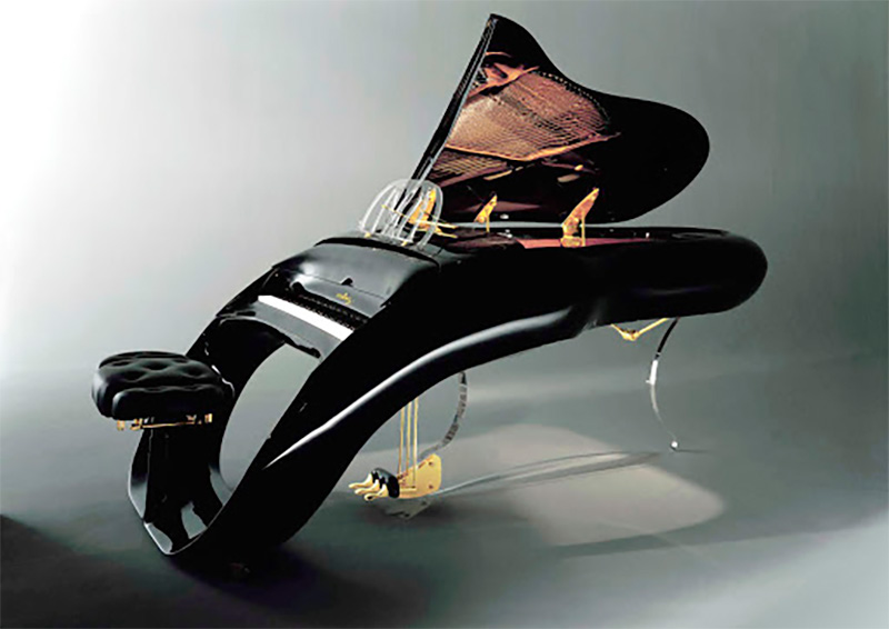 Это дизайн футуристический, а рояль обыкновенный. Реально футуристическое фортепьяно вот: www.studiofaporsche.com - потому что использует тензодатчики вместо резиночек как в пульте от телевизора. Но пока в разработке, вроде.
