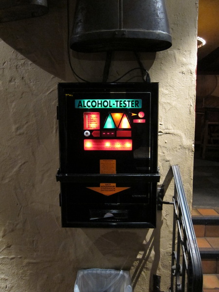 В одном из залов на стене висит здоровенный алкотестер. Он показывает, можно ли тебе садиться за руль или пора возвращаться за столик и пить до упаду. Если алкотестер видит, что клиент уже перебрал - того втягивает в трубу, висящую над алкотестером, и по трубе доставляет в специальное помещение, где клиент отсыпается.