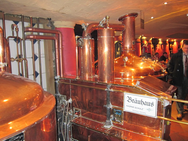 В рамках знакомства с местными культурными традициями посетил две принципиально разных гамбургских пивнушки. Первая - типично северная. Подвальное помещение, анфилада залов, зальчиков и комнатушек, пиво варится непосредственно в заведении. Еда - простая и питательная: всякие колбаски, свиное колено, капуста и все такое. И это набирают на подносы, оплачивают и тащат к себе на стол. Пиво можно взять самому, можно попросить принести официанта. Пивные установки стоят прямо в зале.