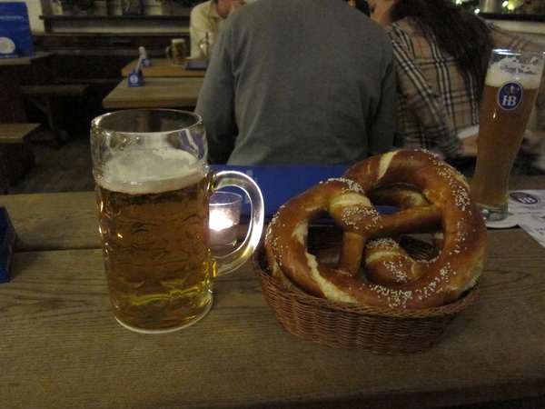 Большие залы, высокие потолки, много пространства и света. Пиво - баварское, привозное, но, разумеется, разливное. Подают в различных бокалах, в том числе - в знаменитых "массах", литровых кружках. К пиву подают чудесные крендельки (бретцели).
