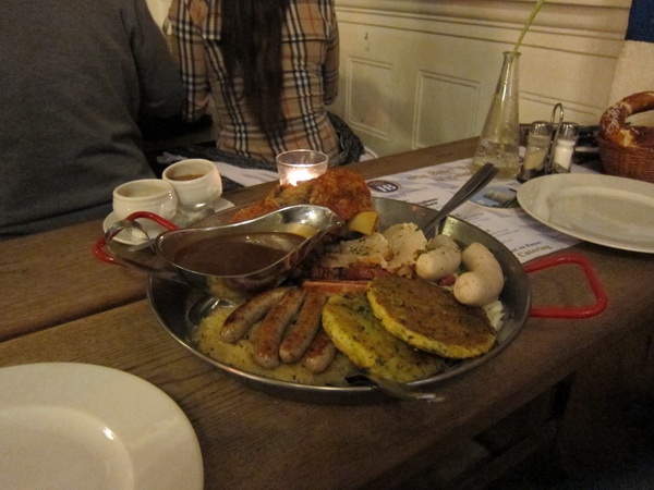 Еды - полно всякой разной. Мы себе выбрали тарелочку на двоих - всякие колбаски, капустка и все такое. Традиционный немецкий стиль.