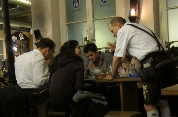 Официанты одеты в типично баварскую одежду: шорты, гетры, белые рубашка. Вот этот официант был большой приколист - все время что-то отмачивал, и это было очень смешно.