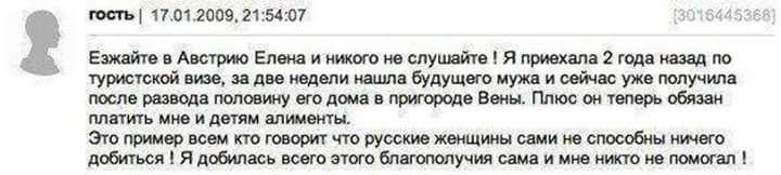Ну на самом деле с тетками здесь плохо. Красивых не так много, как в России. А самое главное они балованые. Так что ехать в Россию за бабой - самое то. Другое дело, что теперь бабы российские шибко умные стали, через три года, сразу по получению гражданства файлят объюз и делят по суду имущество. В общем, куды ни кинь, все клин.